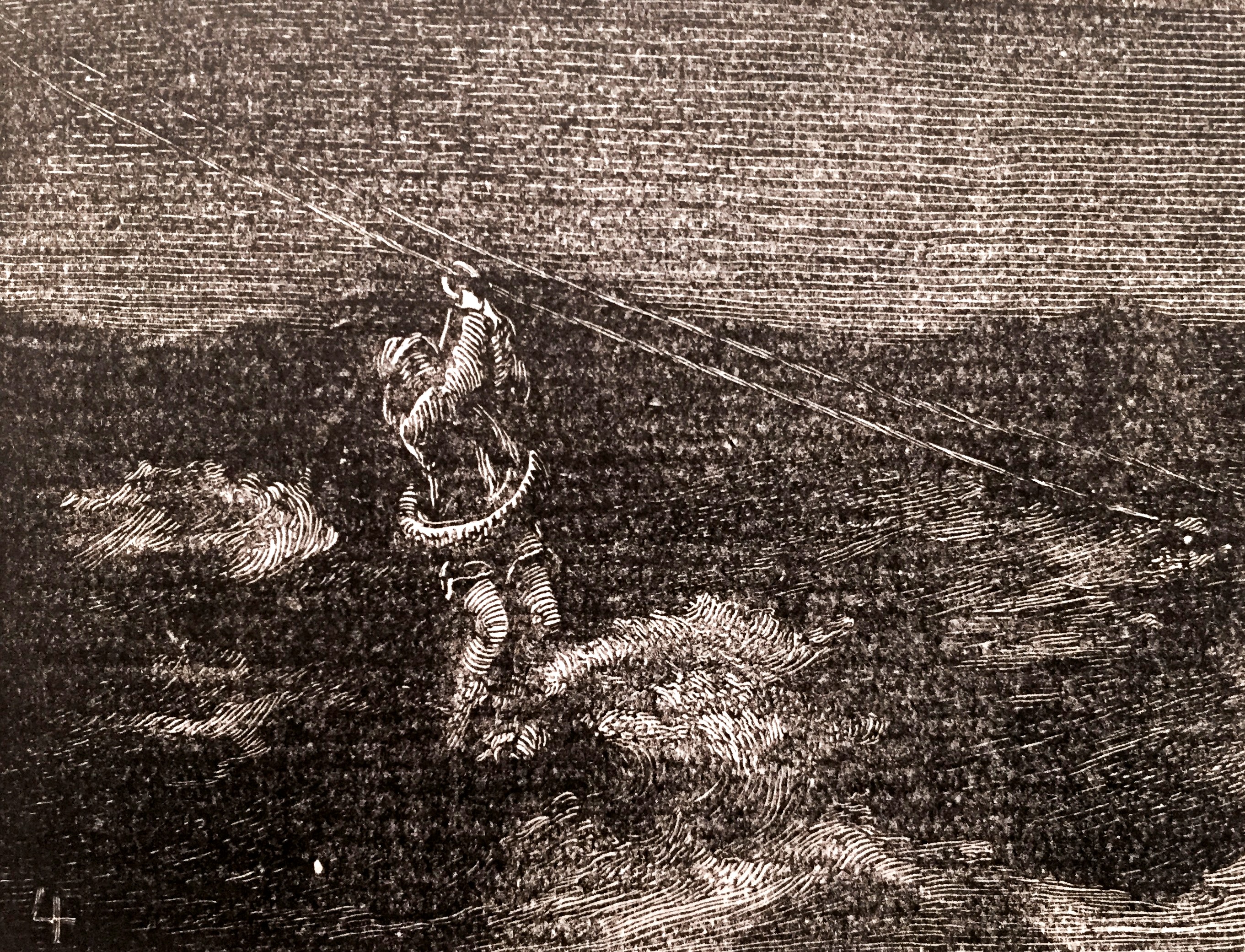 Our portrait of Mr. J. F. Spence is copied from an oil painting by Mr. F. S. Ogilvie, of North Shields, while that of Mr. John Morrison is reproduced from a photograph by Messrs. Auty and Ruddock, of Tynemouth. The other sketches which accompany this article show how the rocket apparatus is worked. When the apparatus which is transported in a waggon specially provided for the purpose has arrived at the scene of action and is got into position, a rocket, with a thin line attached, is fired over the wreck. This line is secured by the crew on board, who, at a given signal, make fast a block to the highest secure part of the wreck. Another signal is then made, and the coastguard, by means of an endless line, haul off a hawser, which is made fast on board about eighteen inches above the block. If the wreck is stationary, and circumstances permit, the shore end of the hawser is passed over a crutch, and set taut with a tackle, which is generally hooked into an anchor buried in the beach for the purpose. A breeches-buoy, which travels suspended from the hawser, is then hauled backwards and forwards between the vessel and the shore until all the passengers and crew are landed, the persons to be saved sitting in the buoy with legs thrust through the breeches.