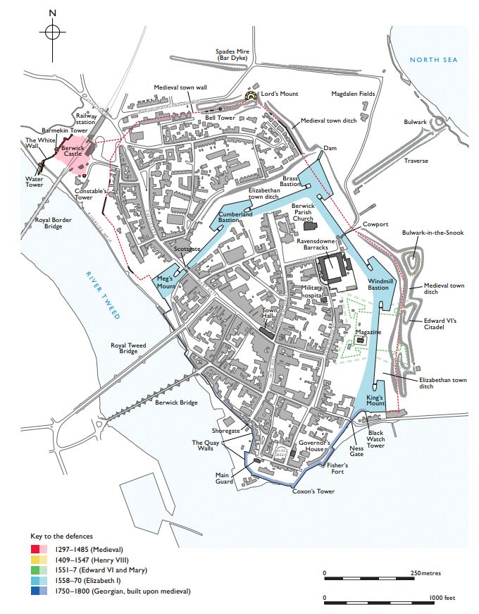 The medieval defences of Berwick are largely lost and, in the name of Victorian progress, unfortunately much of what remained of Berwick Castle was demolished in the mid-19th Century to make way for Berwick railway station and the now iconic Royal Border Bridge. Remains of the eastern ramparts and the White Wall can be seen in some splendour from Coronation Park. It’s worth a walk through the park and down to the banks of the Tweed where you can inspect the ruins and marvel at what must have been an impressive fortress in 1333.