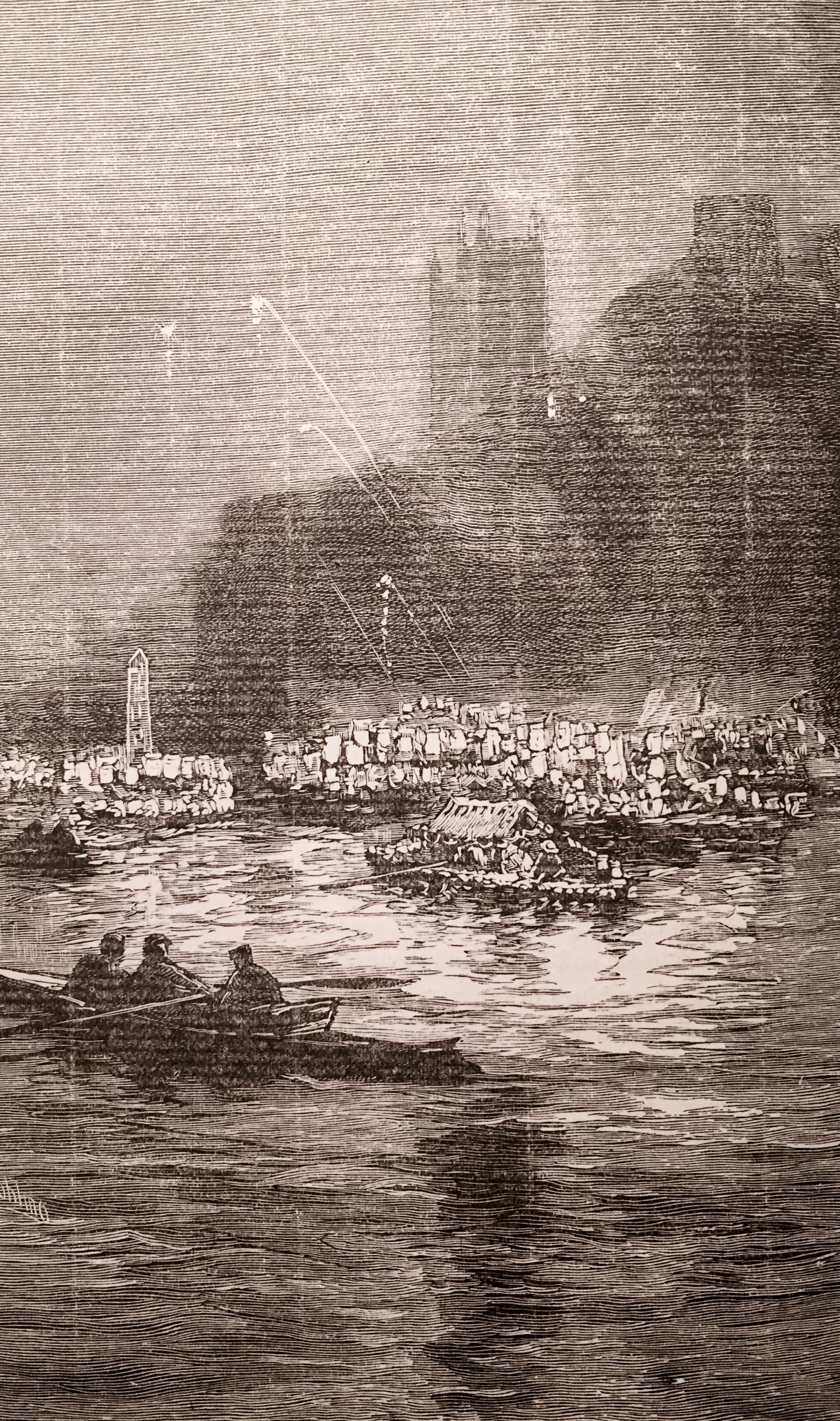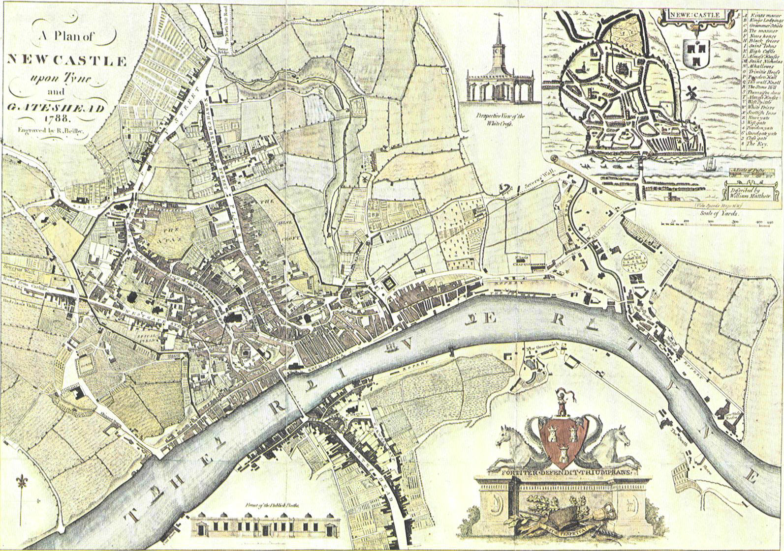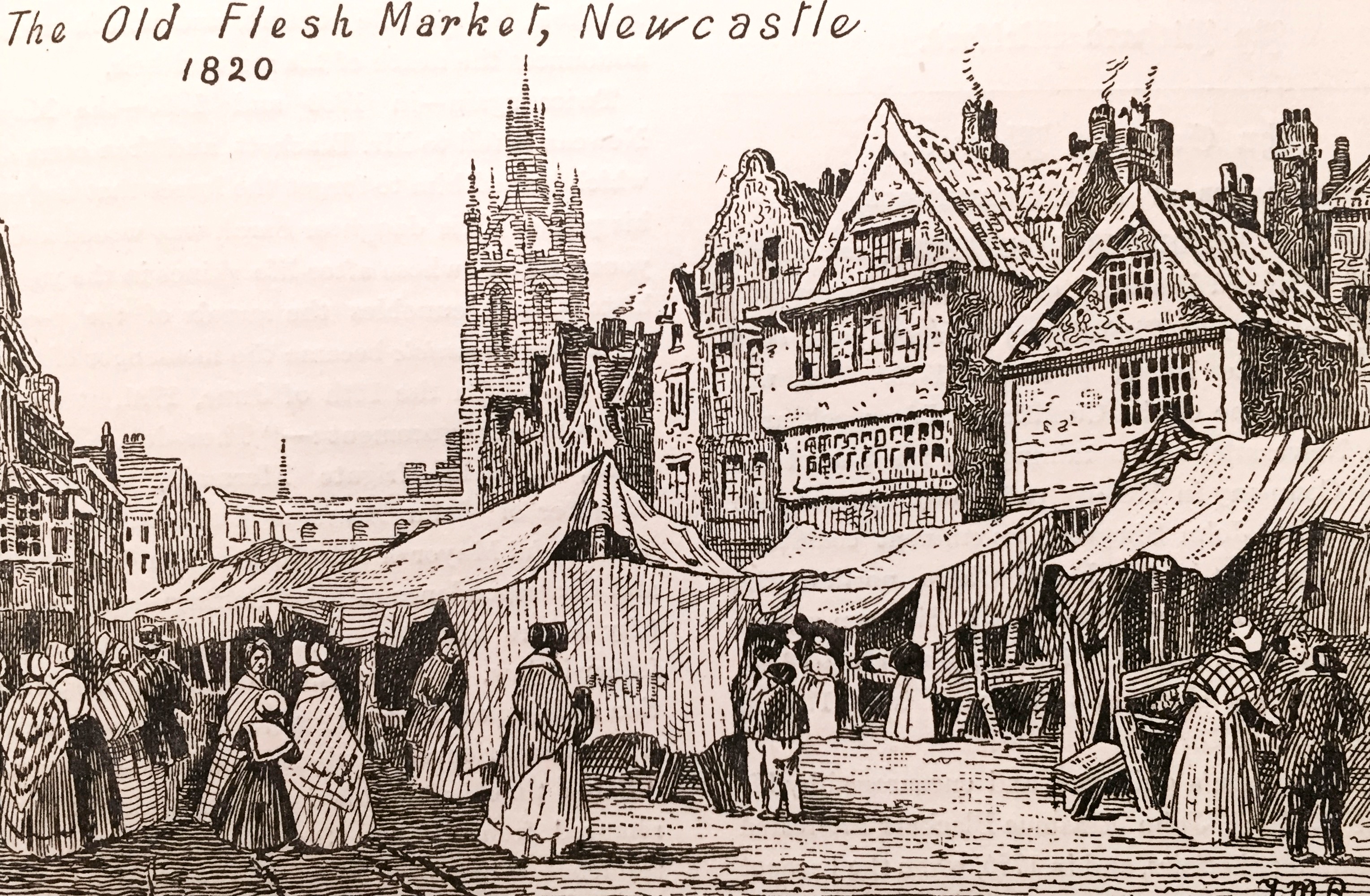 The time was coming when this local Rialto was to receive its baptism of fire. Men of middle age remember that season of trouble and anxiety right well. Those of them at all interested in the Quay in the year 1854 will recollect the quaint, old-fashioned appearance which its buildings then presented. Queerest of them all, perhaps, was the Grey Horse public-house, with its bold projection seeking, and not in vain, to usurp part of the footpath. On the night of the 5th of October in that year, that great fire occurred which has already been described in the Monthly Chronicle. (See vol. ii., p. 549). As in so many matters more, out of this immediate evil came future good. In place of the old chares and time-worn houses and shops thus so decisively destroyed, there arose those handsome stone-fronted buildings which have so often attracted the attention of passing travellers along the High Level Bridge.